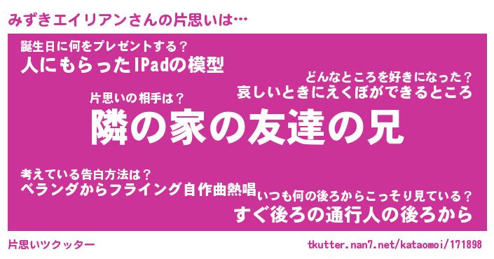 | 胡散臭い通販商品みたいなあだ名 | 『必ず成功する霊験あらたかなお札…その名も「みずきエイリアン」』 |