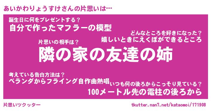| 男性向けラノベタイトル風あだ名 | 『あいかわりょうすけの憂鬱』 |