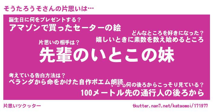 | ピコ太郎風あだ名 | 『ソコ史郎』『ピソ八郎』『ソウ一郎』 |