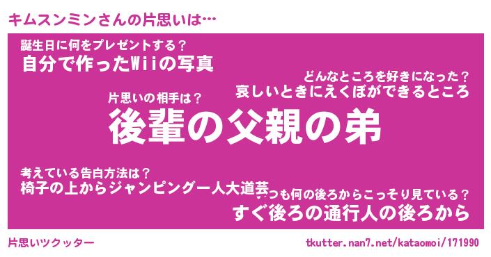 | 意味不明あだ名 | 『ペロリンキムスンミン』 |