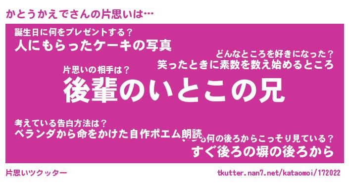 | 胡散臭い通販商品みたいなあだ名 | 『億万長者になれる水晶球…その名も「かとうかえで」』 |