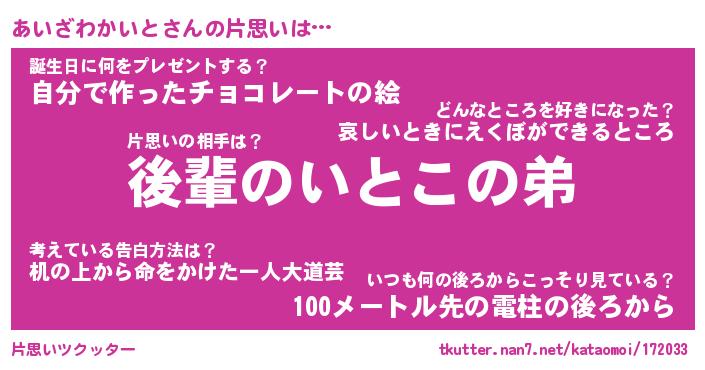 | 胡散臭い通販商品みたいなあだ名 | 『モテモテ間違いなし水晶球…その名も「あいざわかいと」』 |