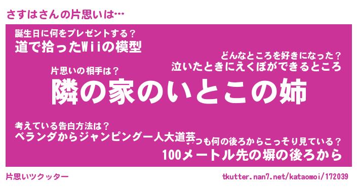 | 男性向けラノベタイトル風あだ名 | 『さすはの憂鬱』 |