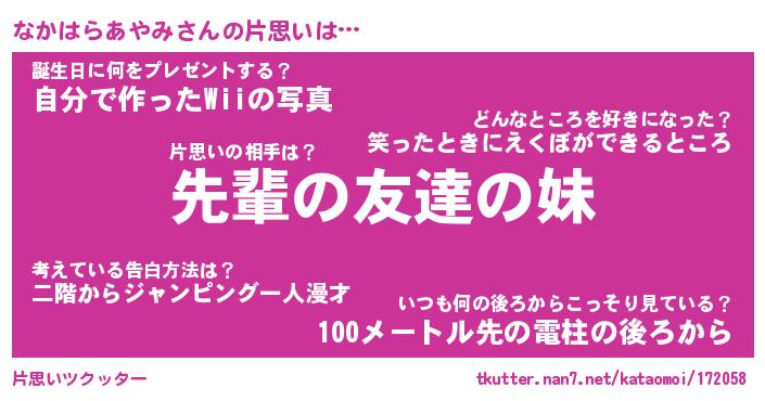 | ヘコむあだ名 | 『なかっふぃ~』『つくし』『なかを』 |
