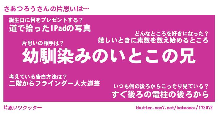 | 男性向けラノベタイトル風あだ名 | 『さあつろうの憂鬱』 |