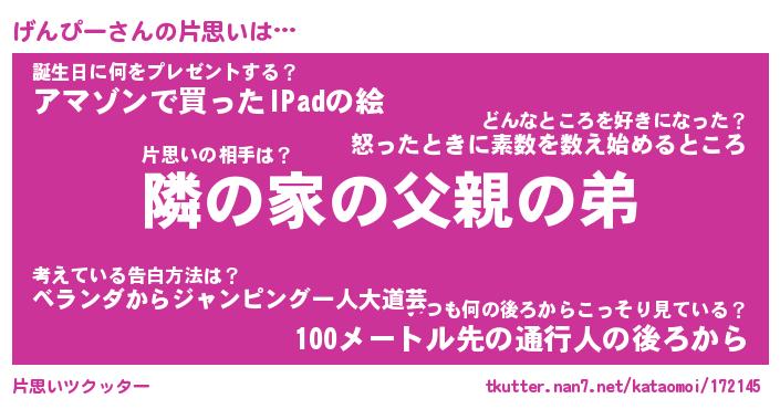 | 男性向けラノベタイトル風あだ名 | 『げんぴーの憂鬱』 |