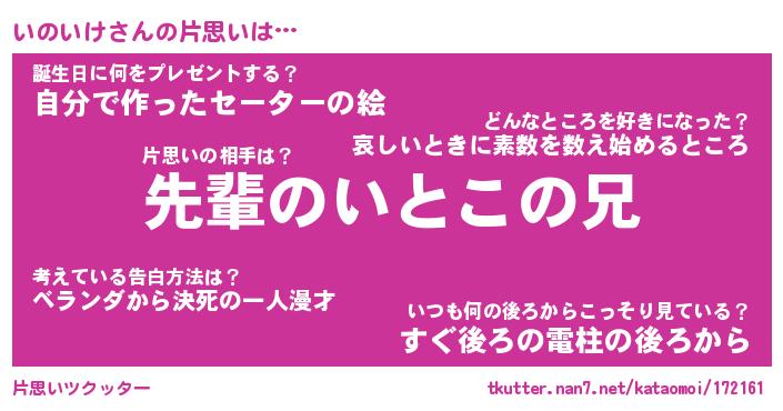 | ヘコむあだ名 | 『いのにゅー』『つくし』『いの太郎』 |