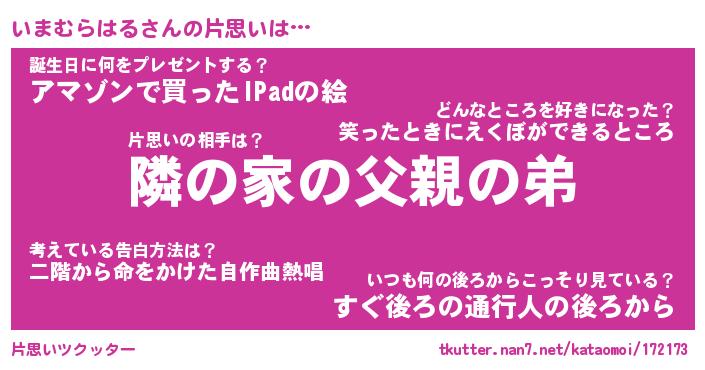 | ポケモン風あだ名 | 『イマチュウ』『イマムダネ』 |