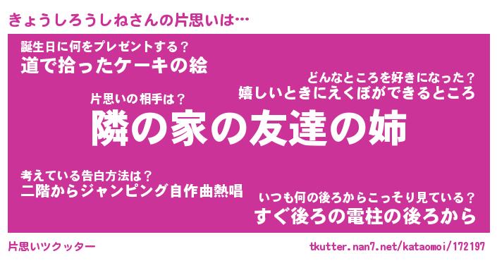| 恥ずかしいあだ名 | 『プリティーきょうしろうしね』 |