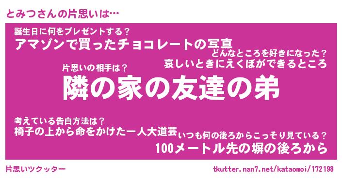 | 男性向けラノベタイトル風あだ名 | 『とみつの憂鬱』 |