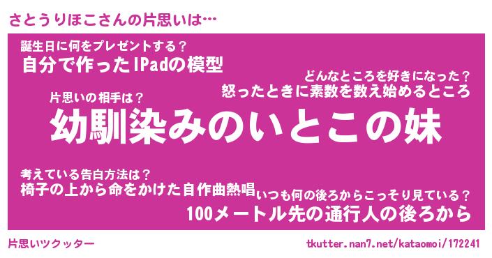 | 胡散臭い通販商品みたいなあだ名 | 『必ず成功する水晶球…その名も「さとうりほこ」』 |