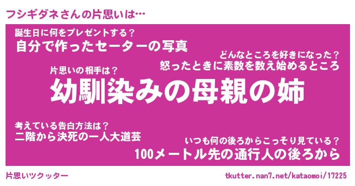 | ファンタジー風あだ名 | 『フシフェル』『エターナルフシギダネー』 |
