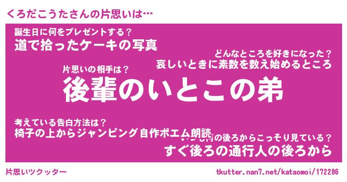| 胡散臭い通販商品みたいなあだ名 | 『億万長者になれる水晶球…その名も「くろだこうた」』 |