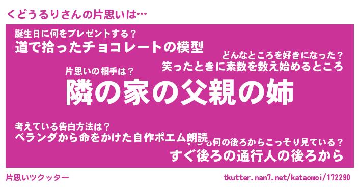 | 胡散臭い通販商品みたいなあだ名 | 『必ず成功するブレスレット…その名も「くどうるり」』 |