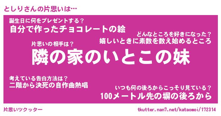 | ヘコむあだ名 | 『としもー』『つくし』『としっぺ』 |