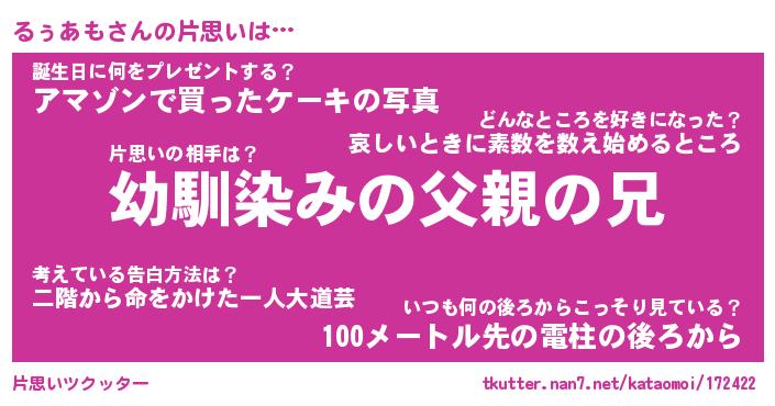 | 胡散臭い通販商品みたいなあだ名 | 『必ず成功するブレスレット…その名も「るぅあも」』 |