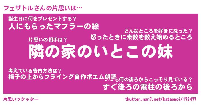 | 男性向けラノベタイトル風あだ名 | 『フェザトルの憂鬱』 |