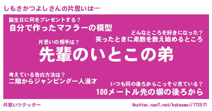 | ヘコむあだ名 | 『しもにゅー』『牛乳』『しもっ子』 |