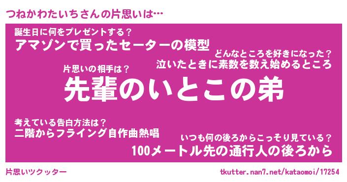 | 男性向けラノベタイトル風あだ名 | 『つねかわたいちの憂鬱』 |