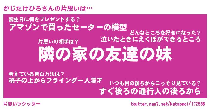 | 胡散臭い通販商品みたいなあだ名 | 『必ず成功する霊験あらたかなお札…その名も「かじたけひろ」』 |