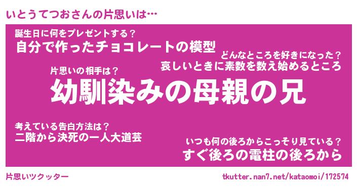 | 胡散臭い通販商品みたいなあだ名 | 『必ず成功するブレスレット…その名も「いとうてつお」』 |