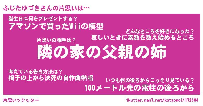 | ヘコむあだ名 | 『ふじにゅー』『なまこ酢』『ふじを』 |