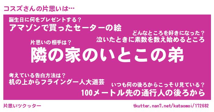 | 男性向けラノベタイトル風あだ名 | 『コスズの憂鬱』 |