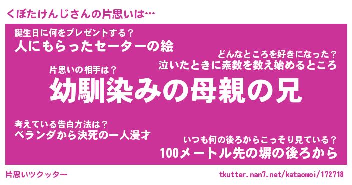 | 女子向けラノベタイトル風あだ名 | 『(仮)くぼたけんじのやんごとなき事情』 |