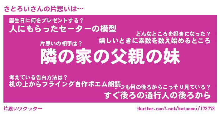 | 意味不明あだ名 | 『ペロリンさとろい』『永久保存さとろい』 |