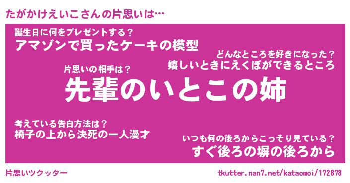 | 男性向けラノベタイトル風あだ名 | 『たがかけえいこの憂鬱』 |