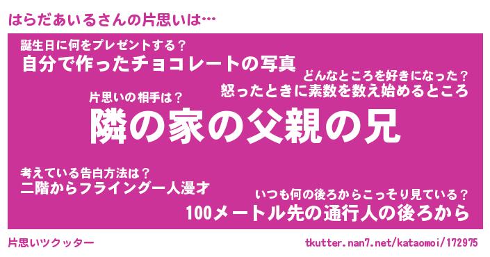 | 男性向けラノベタイトル風あだ名 | 『はらだあいるの憂鬱』 |