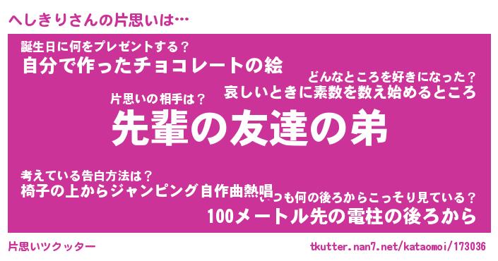 | 意味不明あだ名 | 『ペロリンへしきり』『永久保存へしきり』 |