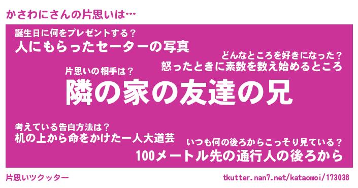 | 男性向けラノベタイトル風あだ名 | 『かさわにの憂鬱』 |