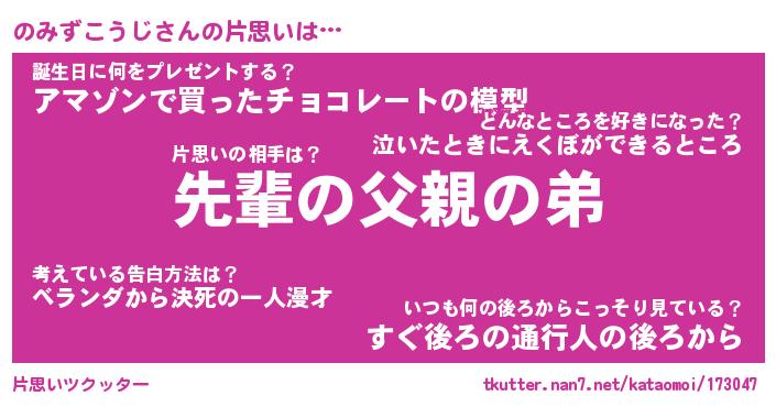 | ヘコむあだ名 | 『のみにゅー』『酢こんぶ』『のみを』 |