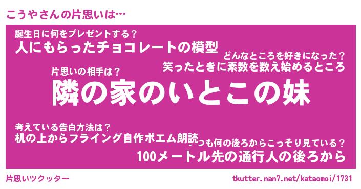 | 男性向けラノベタイトル風あだ名 | 『こうやの憂鬱』 |