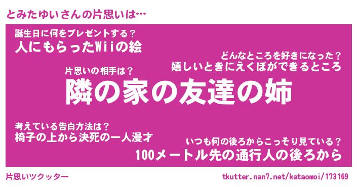| ファンタジー風あだ名 | 『トミフェル』『エターナルトミタユイー』 |
