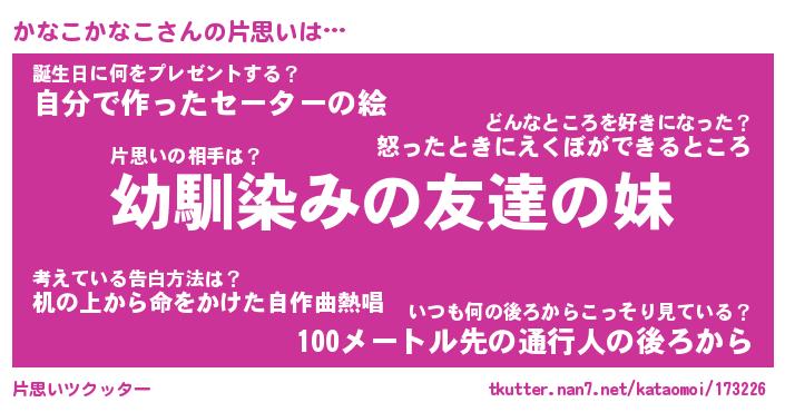 | ヘコむあだ名 | 『かなっふぃ~』『つくし』 |