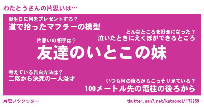 | 胡散臭い通販商品みたいなあだ名 | 『億万長者になれる水晶球…その名も「わたとう」』 |