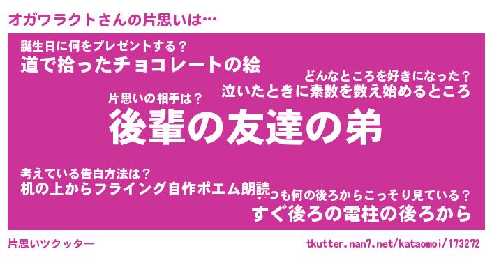 | 胡散臭い通販商品みたいなあだ名 | 『モテモテ間違いなし霊験あらたかなお札…その名も「オガワラクト」』 |