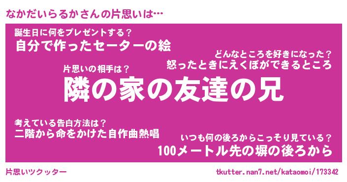 | 男性向けラノベタイトル風あだ名 | 『なかだいらるかの憂鬱』 |