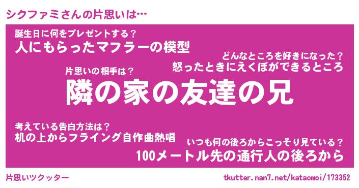 | 男性向けラノベタイトル風あだ名 | 『シクファミの憂鬱』 |