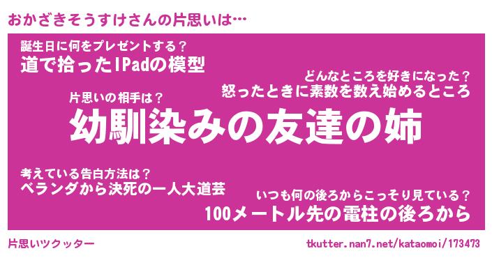 | 男性向けラノベタイトル風あだ名 | 『おかざきそうすけの憂鬱』 |