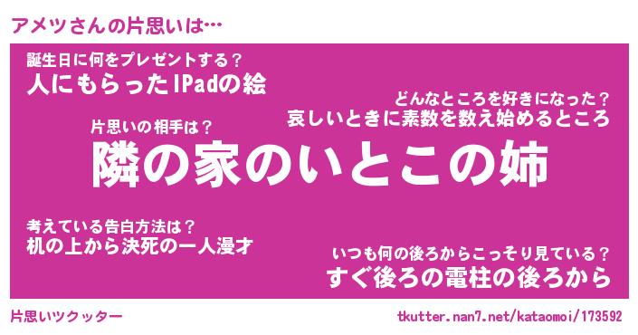 | 意味不明あだ名 | 『ペロリンアメツ』『アメツフォーエバー』 |