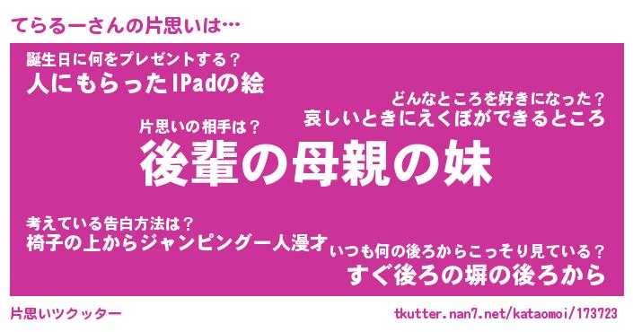 | 意味不明あだ名 | 『ペロリンてらるー』『永久保存てらるー』 |