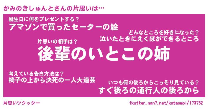 | 伝説のあだ名 | 『封印されしスナイパーかみのきしゅんと』 |