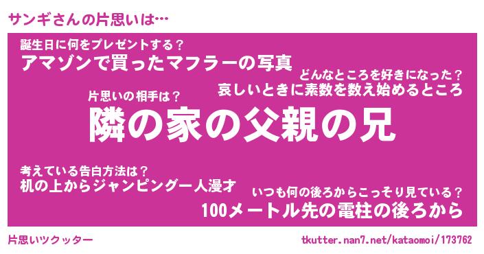| 男性向けラノベタイトル風あだ名 | 『サンギの憂鬱』 |