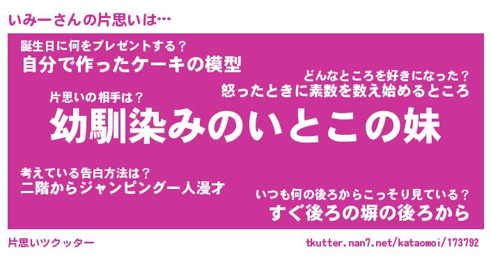 | ヘコむあだ名 | 『いみもー』『牛乳』『いみっぺ』 |