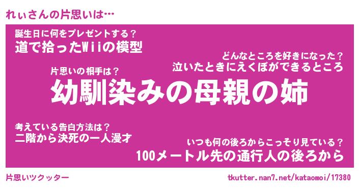 | 胡散臭い通販商品みたいなあだ名 | 『必ず成功するブレスレット…その名も「れぃ」』 |