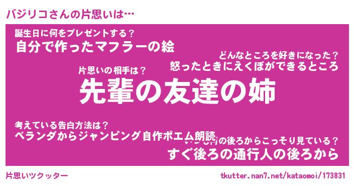 | ヘコむあだ名 | 『バジっふぃ~』『つくし』 |