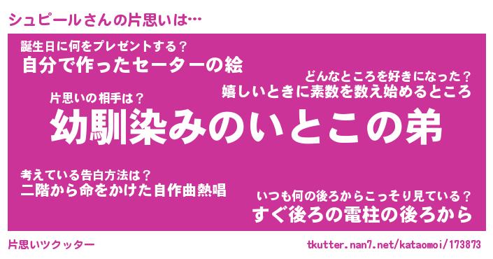| ヘコむあだ名 | 『シュもー』『牛乳』『シュぷりん』 |